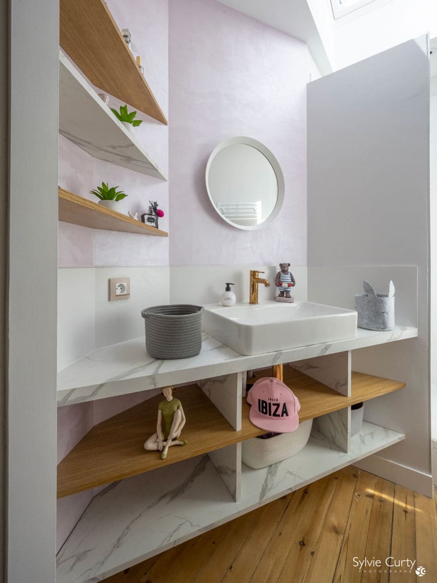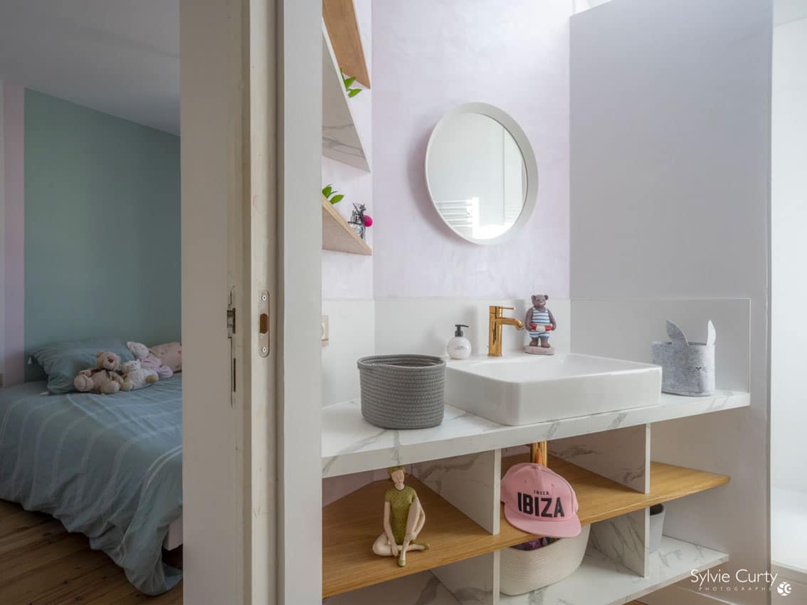 Ce projet d’aménagement intérieur illustre une approche sur mesure, où chaque mètre carré est valorisé grâce à un travail précis sur les volumes, les usages et les détails décoratifs.